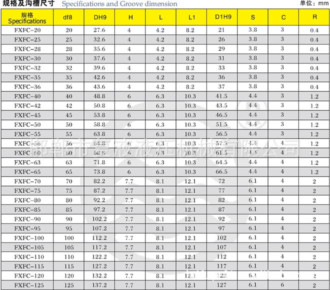 性能和用途:由一個(gè)異形環(huán)和兩個(gè)O形橡膠密封圈組成,異形環(huán)帶有一個(gè)密封刃口,帶一個(gè)防塵刃口,具有密封防塵雙重作用,可與我們的產(chǎn)品FXMd、FXSd聯(lián)合使用。桿徑小于30mm的規(guī)格,應(yīng)采用分體溝槽。