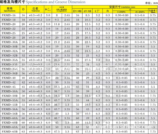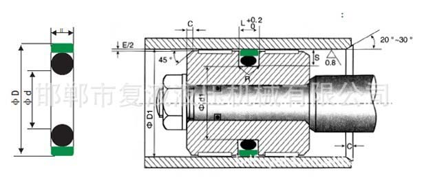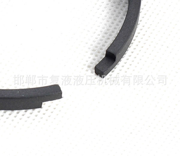 由高耐磨聚四氟乙烯合金復(fù)合材料矩形圈和O形橡膠密封圈組成。O形圈提供足夠的密封力,對(duì)矩形圈的磨耗起補(bǔ)償作用。與導(dǎo)向支撐環(huán)配套使用,缸徑小于∮40的規(guī)格應(yīng)采用分體溝槽。